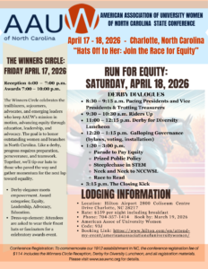 The Salisbury Branch is excited to serve with the Charlotte Branch as co-hosts to the AAUW NC State Conference. Join us in Charlotte, April 17-18, 2026 for Hats Off to Her: The Race to Equity!